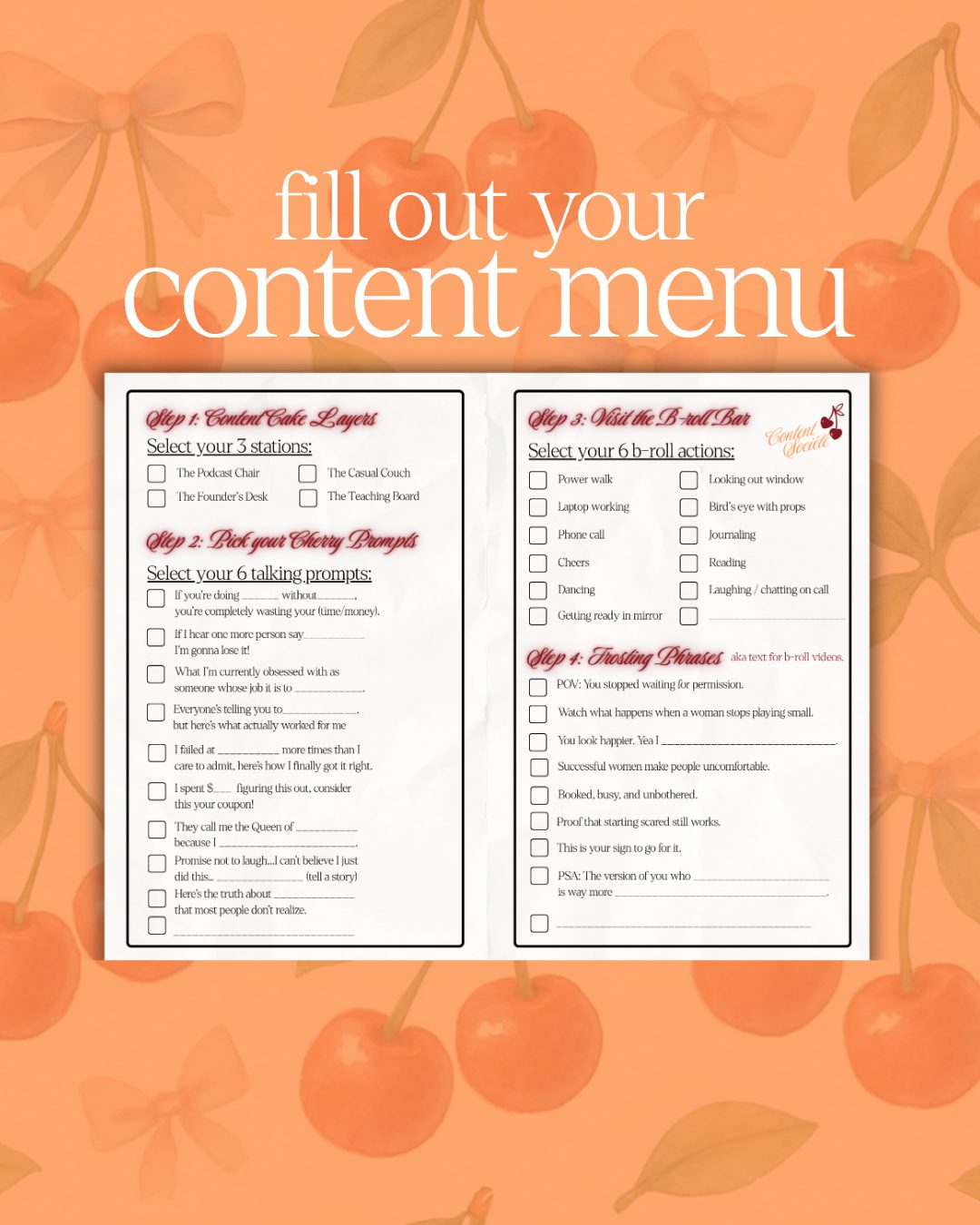 At Content Société you’re guided through a menu of moments to choose your sets for the two-hour shoot, your talking prompts, and your b-roll to capture.